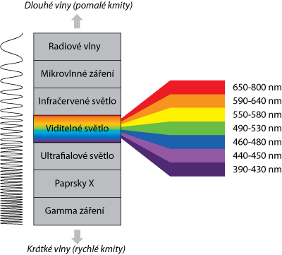 Termografický obraz slona. Viditelné světlo je elektromagnetické vlnění vnímatelné lidským okem. Jeho vlnové délky leží v intervalu 400 nm - 750 nm. Každá vlnová délka představuje určitou barvu světla. Rozložení jednotlivých barev světla znázorňuje obrázek.