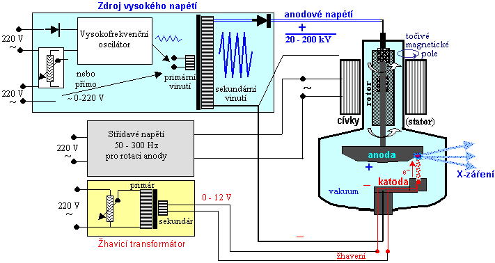 Schématické znázornění rentgenky.