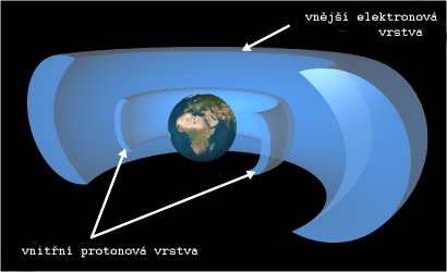Radiační Van Allenovy pásy. Po vstupu do atmosféry interagují částice kosmického záření s přítomnými atomy a molekulami. Zatímco těžší jádra pronikají jen do zcela vnějších vrstev, částice vznikající interakcemi zejména primárních fotonů pronikají až k zemskému povrchu (tzv. sekundární složka kosmického záření).