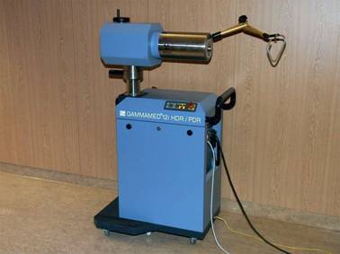 BrachyterapieBrachyterapie je metoda, při které jsou radioaktivní zářiče zaváděny do orgánů. Nejpoužívanějším izotopem v brachyterapii bylo radium 226 Ra. Výhodou byl dlouhý poločas přeměny (1620 let), takže nebylo nutné měnit zdroje. K nevýhodám patřila možnost úniku radonu 222Rn. Později se začaly uplatňovat také umělé radioizotopy (cesium 137Cs, iridium 192Ir, zlato 198Au, jód 125I). Radioizotopy se nejprve zaváděly přímo ručně, což bylo spojeno se značnou expozicí personálu. V 80. letech se začal používat dálkově ovládaný (automatický) afterloading. Automatický afterloadingový přístroj se skládá ze zásobního kontejneru, který tvoří stínění pro jeden nebo více zdrojů. Zdroje zvolené pro aplikaci jsou vybrány ze zásobníku buď mechanicky tenkým lankem nebo pneumaticky. Zdroje jsou uzavřeny v pevném kovovém obalu, takže je vyloučeno jejich uvolnění. Obvykle je nejprve do orgánu zavedena trubička z plastické hmoty (aplikátor), do které se vloží jen maketa zářiče. Teprve po kontrole správnosti zavedení je do aplikátoru zaveden vlastní zářič cesium 137Cs, iridium 192Ir.