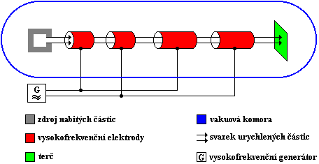 Schéma lineárního urychlovače.