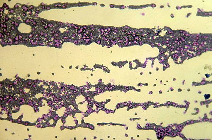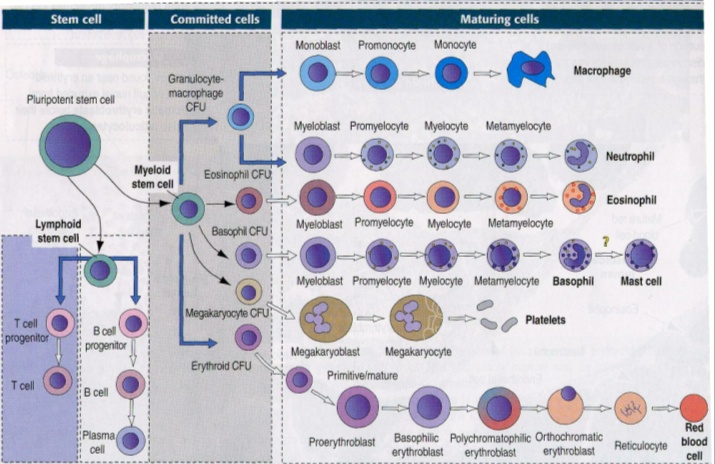 Lymfocyt. Kostní dřeň má značnou regenerační schopnost a i při dávkách přesahujících hodnotu 6 Gy přetrvávají ostrůvky schopné regenerace. Některá ložiska mohou být pouze abortivní, jiná právě postupně regenerují. V důsledku poškození chromozomů je možné pozorovat i četné abnormální mitózy a chromozómové aberace, z nichž některé mohou přetrvávat i řadu let. Jedná se především o výskyt chromatinových můstků, mikrojader, multioilárních mitóz a vznik obrovských buněk.