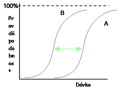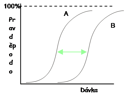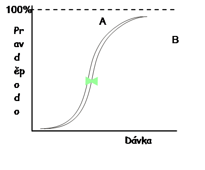 Terapeutický poměr - 3 varianty křivek.