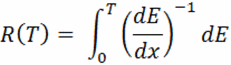 Dosah těžkých nabitých částic o kinetické energii T je možné stanovit na základě vyjádření Přitom pro brzdnou schopnost těžkých nabitých částic lze na základě relativistické kvantové mechaniky odvodit následující vztah kde použité symboly mají následující význam: k0 = 8,99.109 Nm2C-2, z - atomové číslo těžké částice, e - náboj elektronu, n - počet elektronů v jednotce objemu absorbátoru, m - klidová hmotnost elektronu, c - rychlost světla ve vakuu, β=v/c - rychlost uvažované nabité částice k rychlosti světla, I - střední excitační potenciál absorbátoru. V praxi pro stanovení dosahu částic postačí někdy jednodušší vztahy. Tak např. pro částice alfa ve vzduchu o teplotě 15 ˚C a normálním atmosférickém tlaku je tento dosah v cm dán vztahy Rα = 0,56 E, pro E < 4 MeV Rα = 1,24E - 2,62, pro 4 < E < 5 MeV.