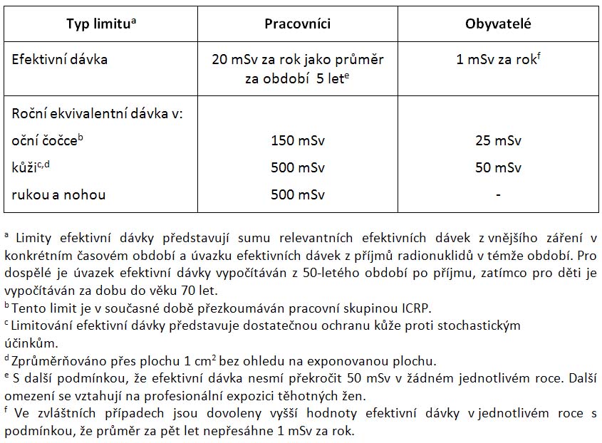 Pro profesionální expozici v plánovaných expozičních situacích ICRP nadále doporučuje, aby limit byl vyjádřen jako efektivní dávka 20 mSv za jeden rok, zprůměrovaná přes definovaná pětiletá období (100 mSv za 5 let) s další podmínkou, že efektivní dávka nesmí překročit 50 mSv v žádném jednotlivém roce. Pro expozici obyvatel v plánovaných expozičních situacích ICRP nadále doporučuje, aby limit byl vyjádřen jako efektivní dávka 1 mSv za rok. Za zvláštních okolností však může být povolena vyšší hodnota efektivní dávky v jednotlivém roce za předpokladu, že průměr přes definovaná pětiletá období nepřekročí 1 mSv za rok.
