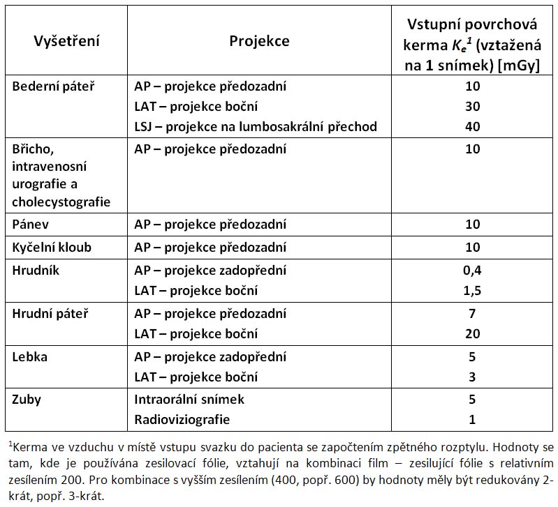Obr. 38. Diagnostické referenční úrovně pro skiagrafická vyšetření.