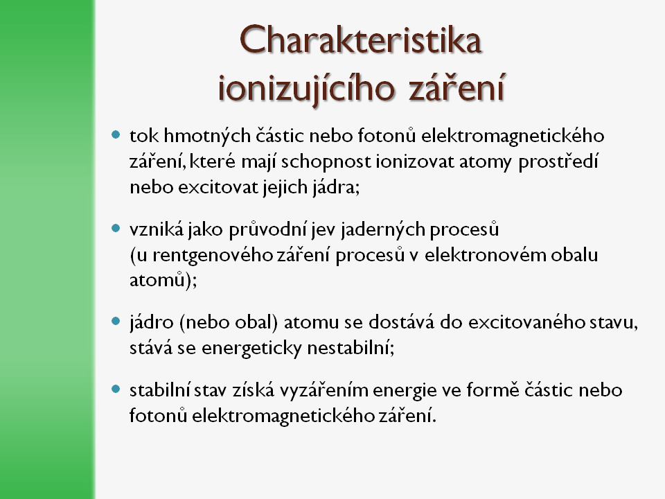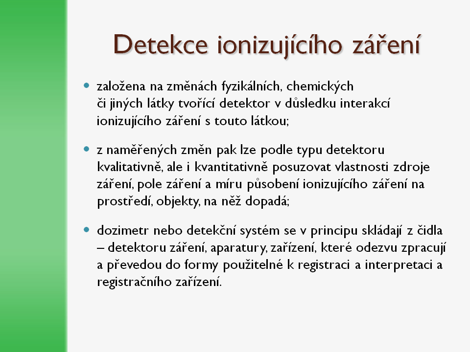 Základnà fyzikálnà poznatky o ionizujÃcÃm a neionizujÃcÃm zářenÃ, jeho detekce a dozimetrie