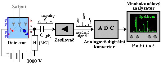 Schematické znázornění elektrického detektoru záření