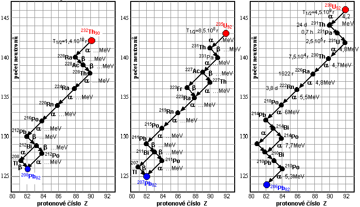 • thoriová (vychází od thoria 232Th, a končí olovem 208Pb);